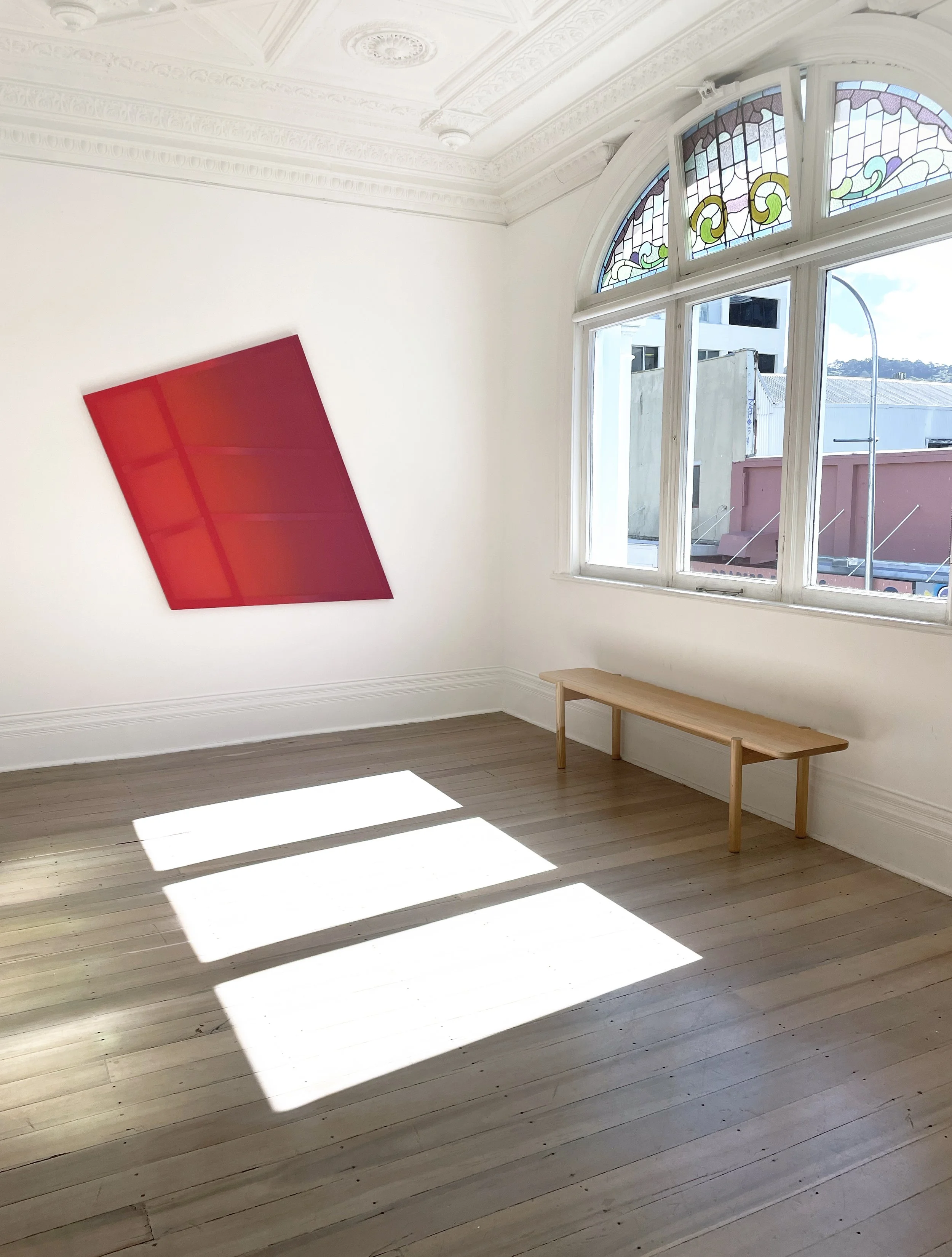 A body of works that quietly asks for your attention. Demarcating space, absorbing sound and activating different chromatic relationships within and without. These relationships are enhanced by light and shadow throughout the day, encouraging spacial awareness.
